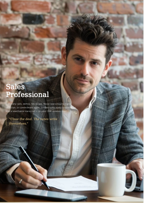Every AI recorder asks you to change your behavior — place a device on the table, open an app, press record. Scriben doesn't. It's the pen you already carry. The notes you already take. We just made it remember everything.